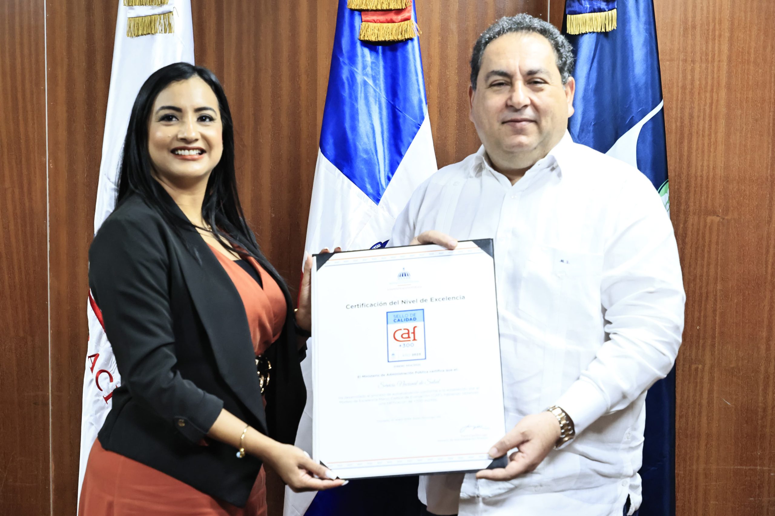 Santo Domingo. – El Servicio Nacional de Salud (SNS) recibió la Certificación del Nivel de Excelencia: Sello CAF + 300, reconocimiento a la gestión eficaz y transparente de la institución.